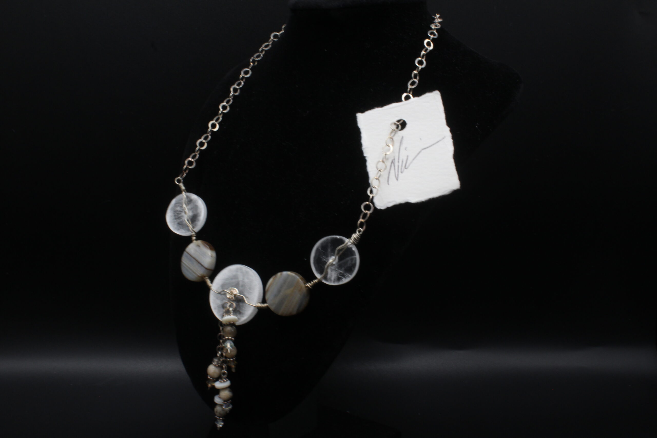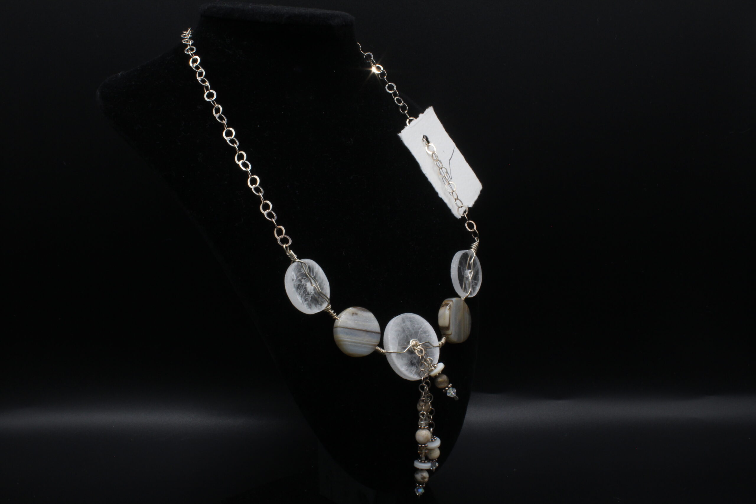 Cascade New Mexico Selenite with Light Banded Agate Necklace: Find your inner strength through grounding with the assistance of the agate stone and the New Mexico selenite that amplifies the effects. You can experience increased concentration and memory as you’re fashioning this exquisite necklace.