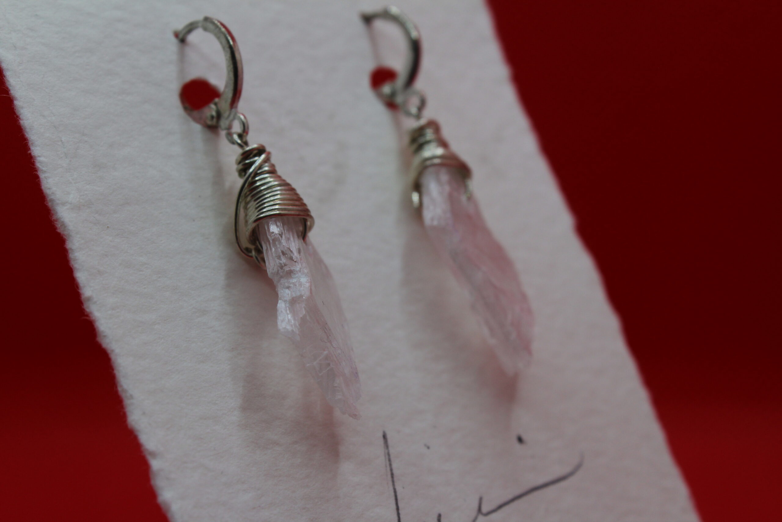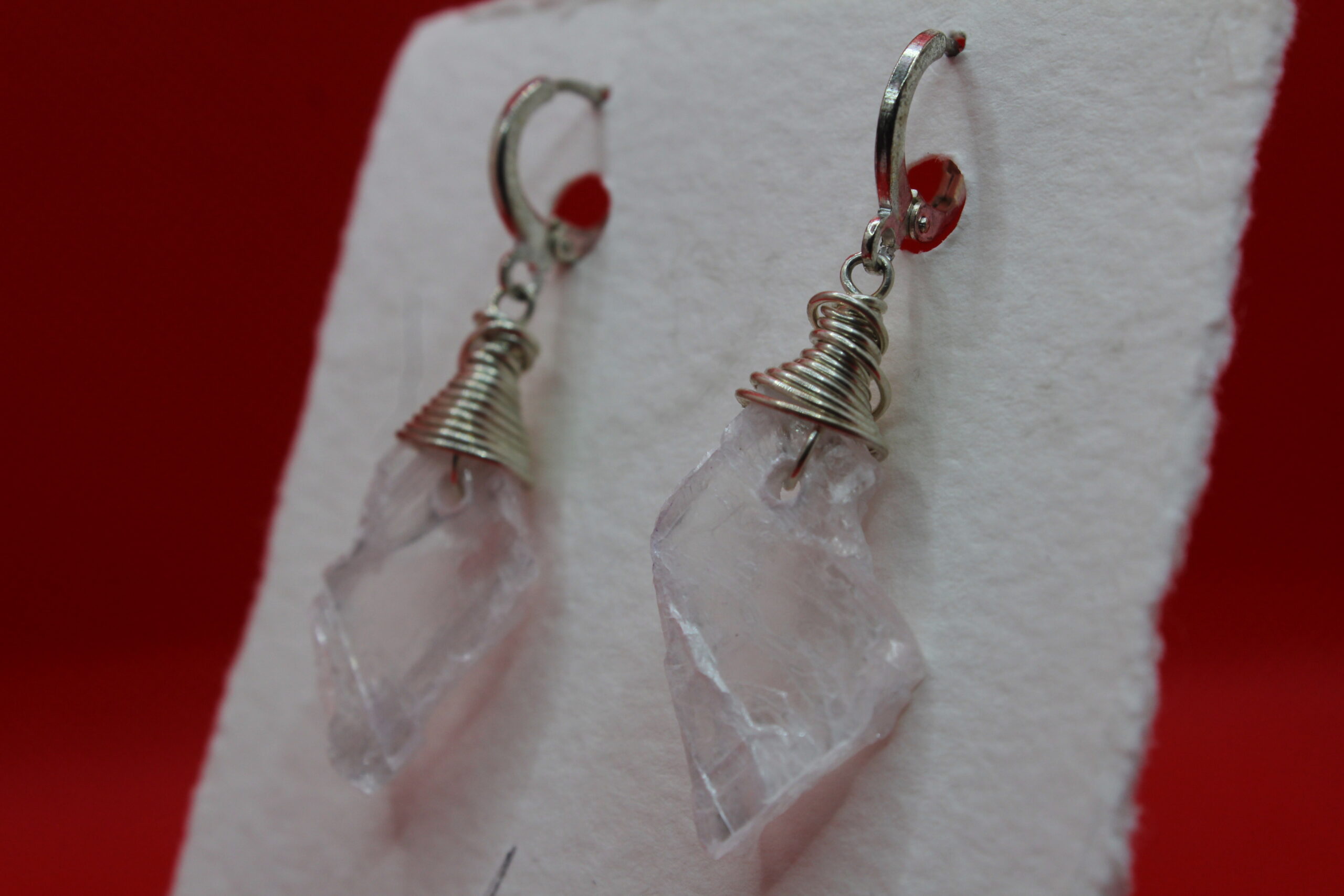 New Mexico Selenite Wire Wrapped Earrings: The simplistic beauty of this pair is capable of matching any outfit and necklace. As you wear the stones your aura will be well protected.